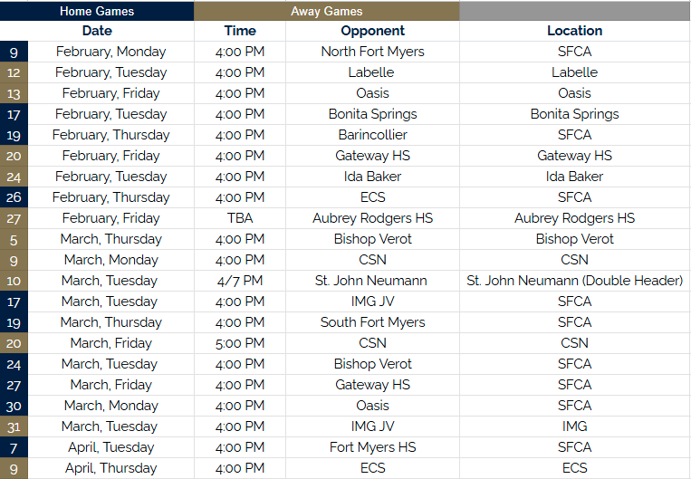 Varsity Schedule